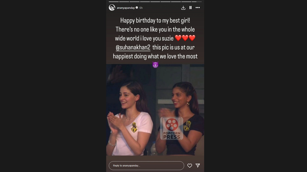 Calling Suhana her "best girl", Ananya took to Instagram Story and wrote, "Happy birthday to my best girl! There's no one like you in the whole world and I love you suzie. This pic is us at our happiest doing what we love the most."