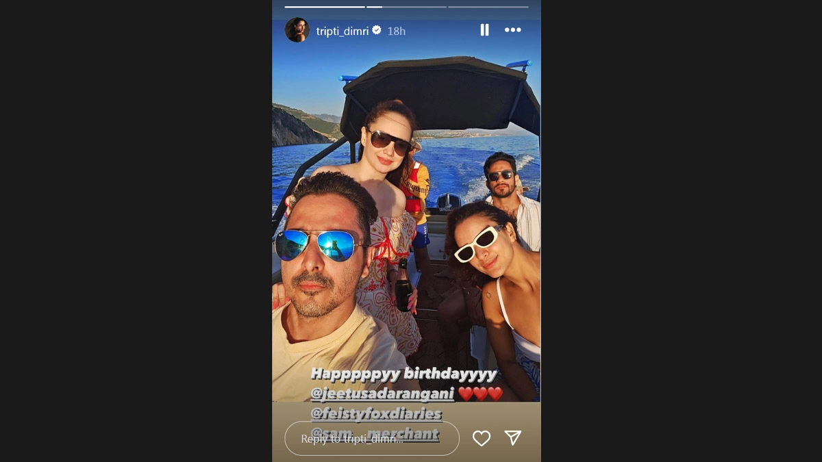 Actress Triptii Dimri, who is currently busy promoting her upcoming film Bad Newz with Vicky Kaushal and Ammy Virk, dropped a sunkissed picture featuring her rumoured boyfriend, Sam Merchant. In the picture posted on her Instagram Stories, Triptii and Sam are seen sitting in a motor boat along with their friends. The photo, taken at an undisclosed location, captures a sunlit moment of the group enjoying their time together. Triptii Dimri Buys Luxurious Home in Mumbai's Bandra Worth Rs 14 Crore – Reports.