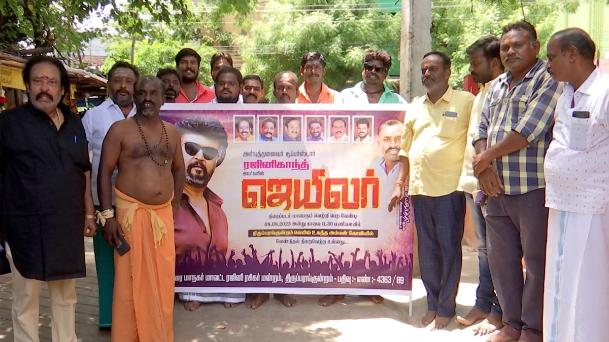 Ahead of the release of Rajinikanth's film Jailer, his fans recently offered special prayers at Thiruparankundram Amman Temple. As the superstar's upcoming flick Jailer is set to hit the theatres on August 10 his fans on Tuesday offered special prayers at the Amman Temple in Madurai for the success of the film. For the huge success of the film, fans performed special worship to the temple deity by offering unique penance 'Man Soru' for the huge success of the movie. Jailer Movie: Review, Cast, Plot, Trailer, Release Date – All You Need To Know About Rajinikanth – Nelson Dilipkumar’s Film!