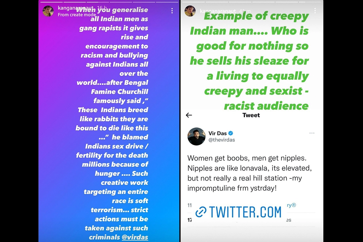 Several social media users including politicians have mocked Vir for insulting his motherland in a foreign country. Kangana Ranaut also took to her Instagram story and slammed Vir's monologue about India and asked for strict action to be taken against him. On her Instagram story, Kangana wrote, "When you generalise all Indian men as gang-rapists it gives rise and encouragement to racism and bullying against Indians all over the world...after Bengal Famine Churchill famously said, 'These Indians breed like rabbits they are bound to die like this...' he blamed Indians' sex drive/fertility for the death of millions because of hunger... Such creative work targeting an entire race is soft terrorism... strict actions must be taken against such criminals @virdas." Vir Das Issues a Statement After His New Viral Video ‘Two Indias’ From US Show Receives Major Backlash.