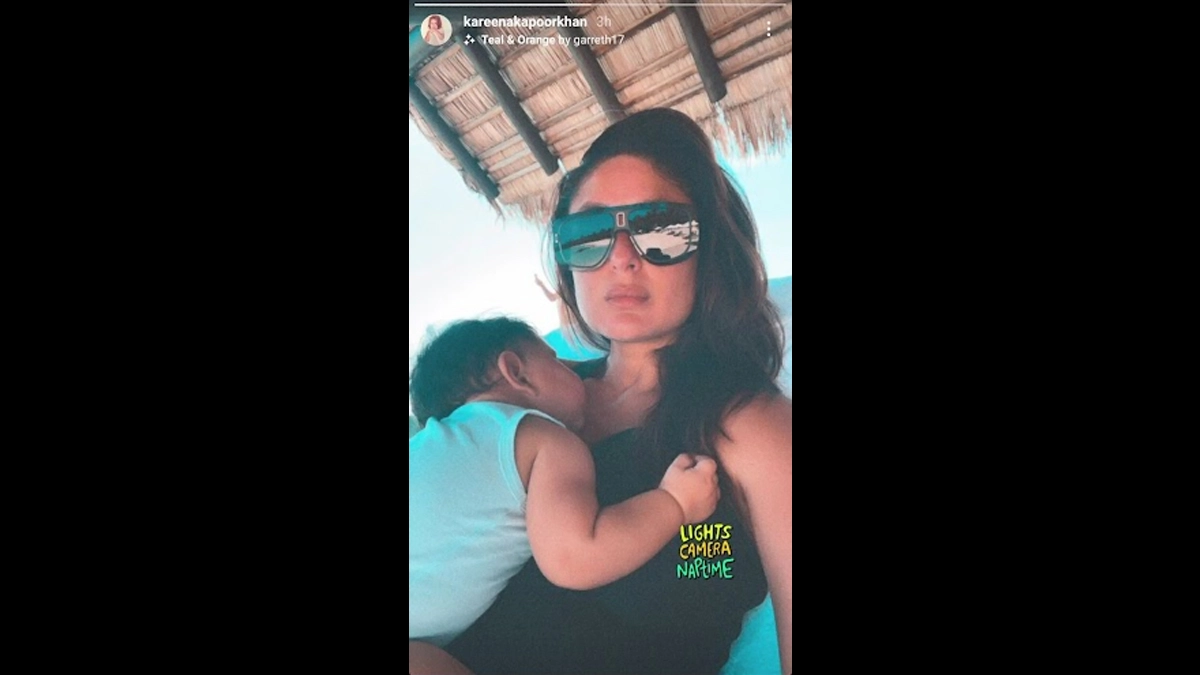 Actor Kareena Kapoor Khan has been sharing beautiful pictures from her vacation in the Maldives. And on Friday, she treated her fans by giving a glimpse of her son Jeh from his nap time. Taking to Instagram Story, Kareena posted a new picture, wherein baby Jeh can be seen clinging on to his mother. Kareena Kapoor Khan Looks Drop-Dead Gorgeous in Her Latest Maldives Selfie (See Pic).