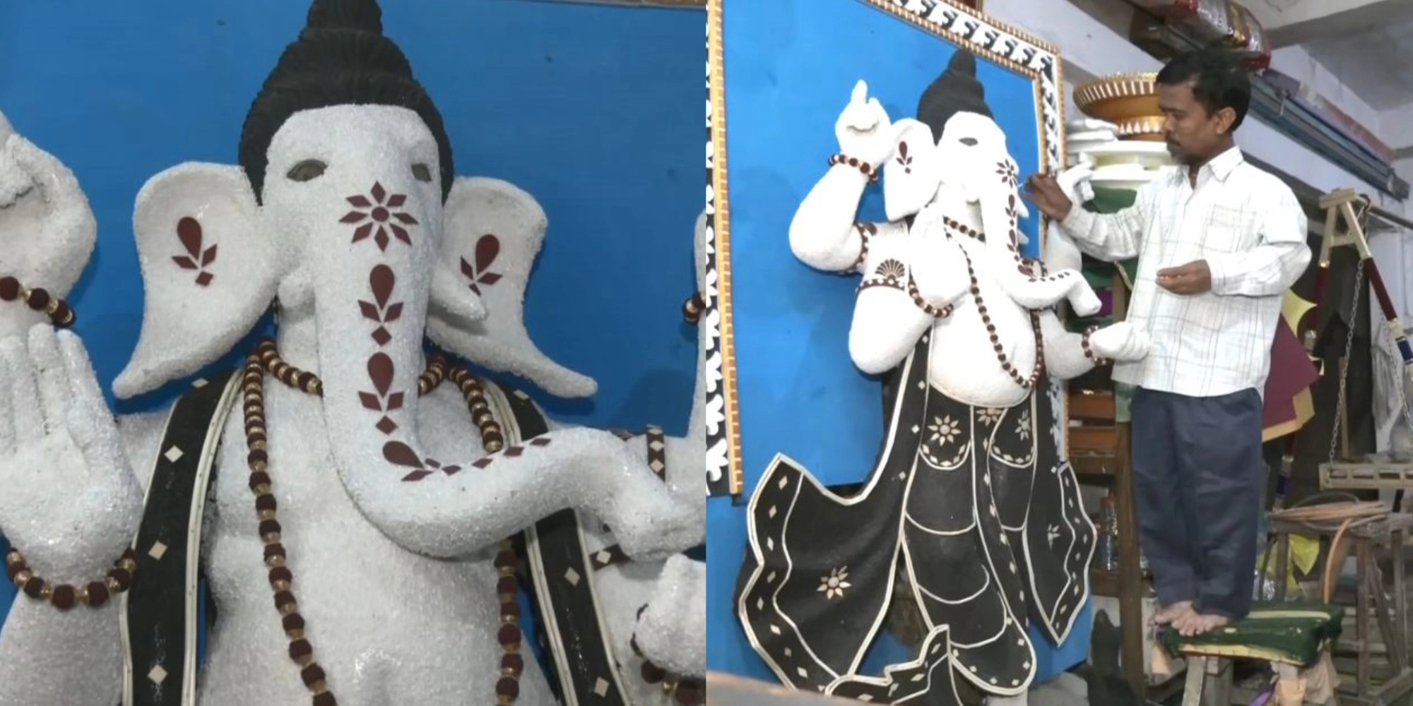 In Bhopal, to save the environment, an artisan is preparing Ganesh idols from sago and black pepper seeds, making it 100 per cent eco-friendly as no colour is used in it.
