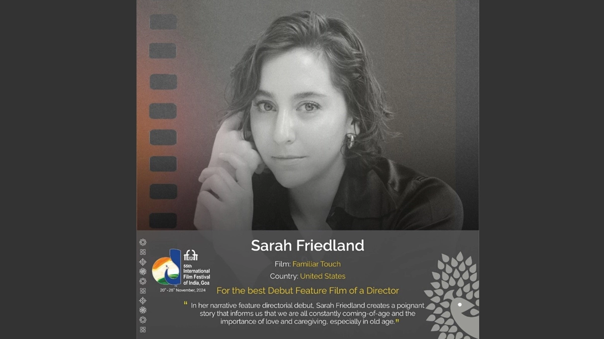 American Director Sarah Friedland was awarded the Best Debut Feature Film award for her poignant narrative Familiar Touch. This award highlights promising new talent in global cinema. Sarah Friedland received a Silver Peacock Trophy, a certificate, and a cash prize of Rs. 10,00,000.
