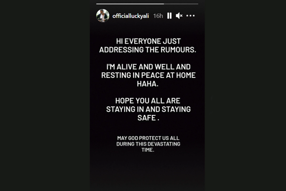 Shutting down all social media rumours about his death due to COVID-19, singer Lucky Ali has confirmed that he is neither died nor been diagnosed with the deadly infection. "Hi everyone just addressing the rumours. I am alive and resting in peace at home," Lucky said in his Instagram story On Tuesday, Indian actor Nafisa Ali Sodhi, who is also Lucky Ali's friend, took to Twitter to bust the rumours. Nafisa Ali Squashes Rumours of Lucky Ali’s Death, Reveals That the Singer Is Spending Time on His Farm.