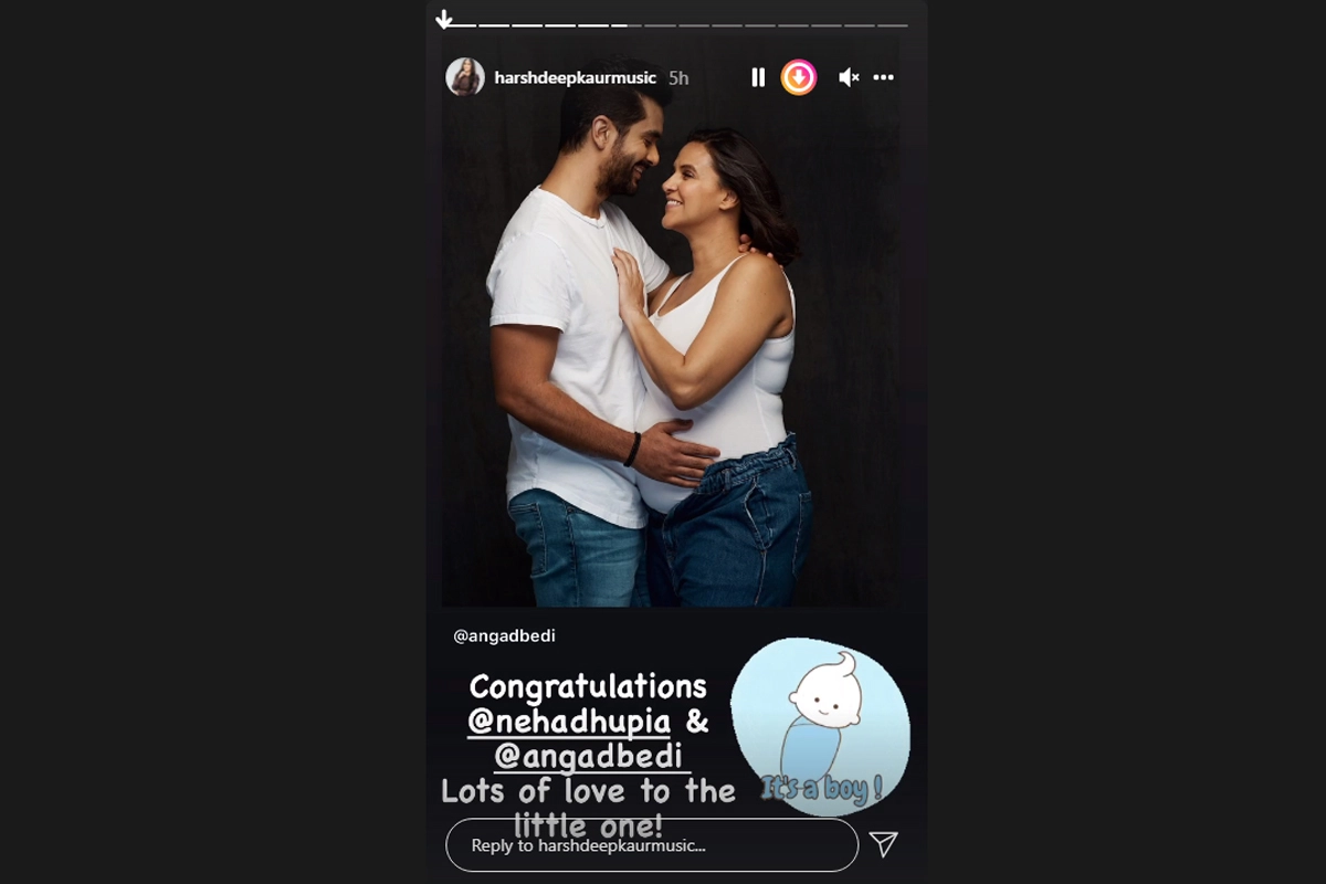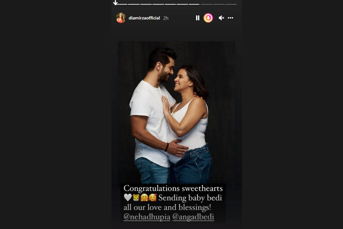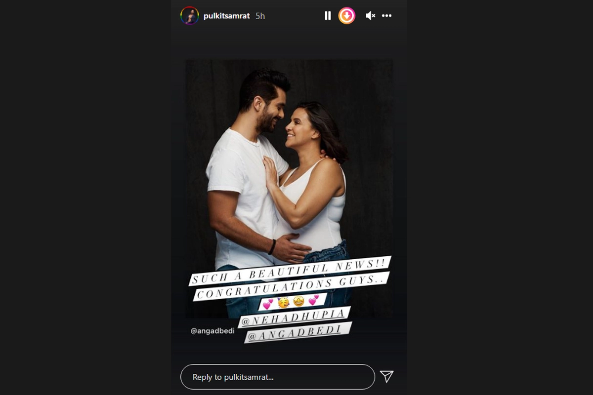 Pulkit Samrat shared Angad's announcement post on his Instagram Story and wrote, "Such beautiful news!! Congratulations guys." Dia Mirza also shared the couple's photo on her Instagram Story and wrote, "Congratulations sweethearts. Sending baby bedi all our love and blessings!" Musician Harshdeep Kaur took to her Instagram Story and wrote the congratulatory message, "Congratulations @nehadhupia and @angadbedi. Lots of love to the little one."