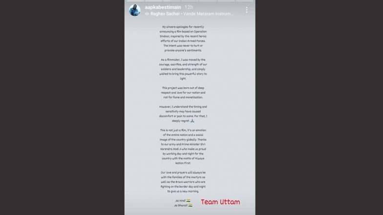 Director Uttam Maheshwari Issues Apology After Announcing Film on ‘Operation Sindoor’