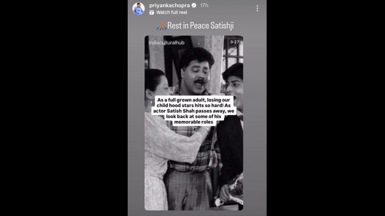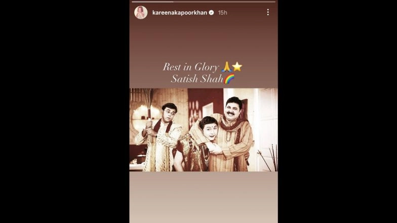 Taking to her Instagram stories, Priyanka Chopra Jonas re-shared a post by India Cultural Hub. She wrote, "Rest in Peace, Satishji." Kareena Kapoor Khan shared an old photograph of the late actor and wrote, "Rest in glory," honouring his lasting legacy.