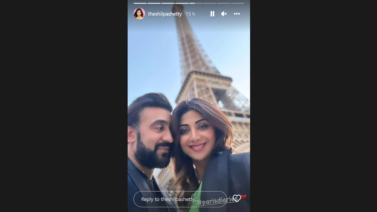 It's raining love in Paris. After Malaika Arora-Arjun Kapoor, Shilpa Shetty and Raj Kundra are now vacationing in the French capital. Taking to Instagram, Shilpa dropped an adorable selfie with her husband Raj Kundra. In the image, Raj is seen looking at Shilpa, while she captures the moment outside the Eiffel Tower. Shilpa Shetty Seeks Blessings at Sai Baba Temple With Husband Raj Kundra (Watch Video).