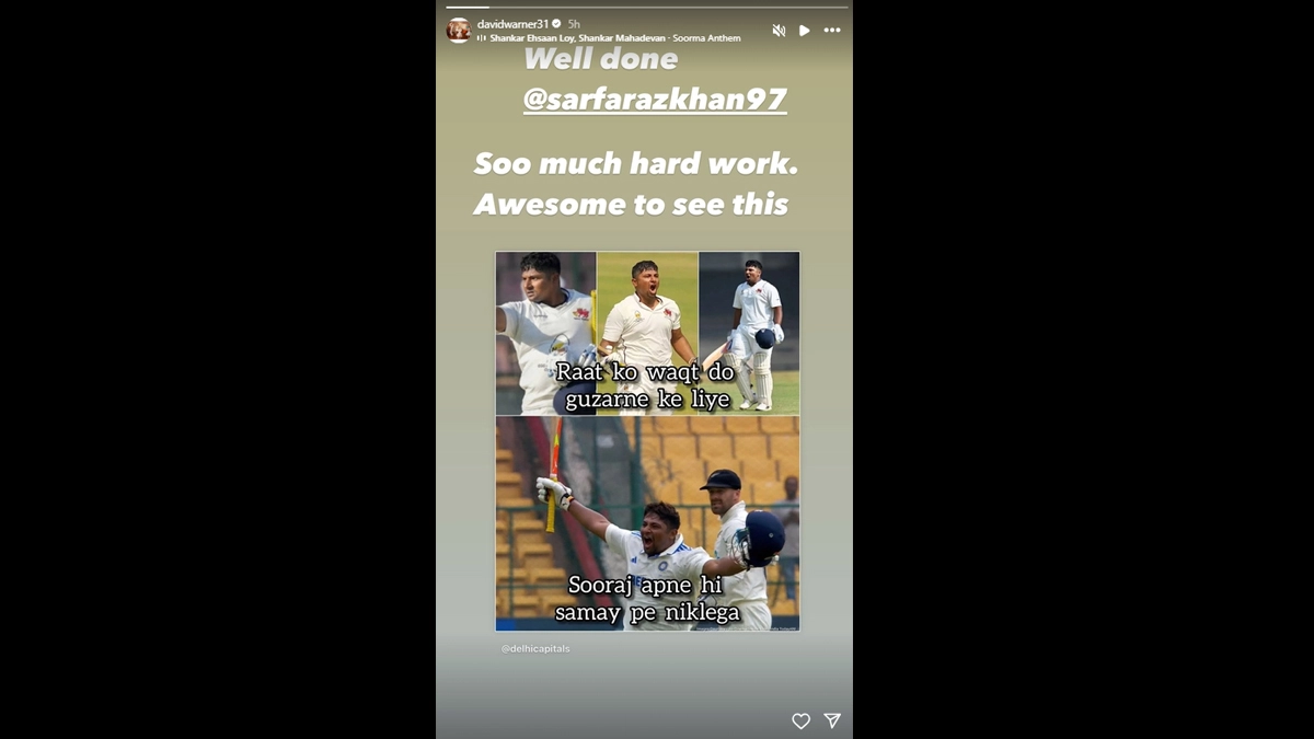 Warner also joined in to congratulate Sarfaraz for his herculean effort and wrote, "So much hard work. Awesome to see this." KL Rahul's Reaction of Disbelief Goes Viral After Rishabh Pant Misses Century By One Run During IND vs NZ 1st Test 2024 (See Pic).