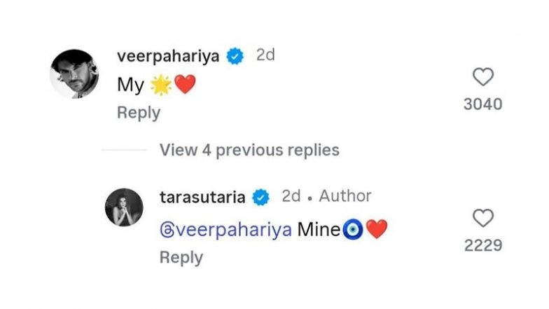 Tara Sutaria Responds As Veer Pahariya Cheers for Her in the Comments