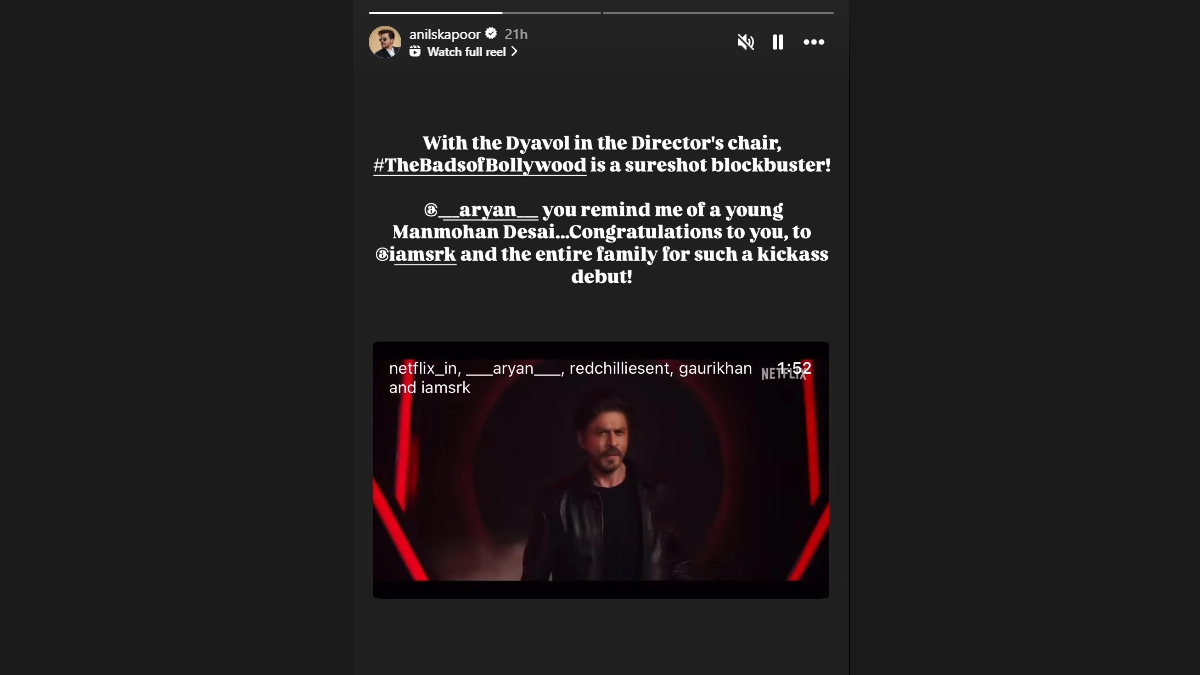 While sharing his feedback on the first look of 'The Ba***ds of Bollywood', Anil wrote, "With the Dyavol in the Director's chair, #TheBadsofBollywood is a sureshot blockbuster! @_aryan_you remind me of a young Manmohan Desai... Congratulations to you, to @iamsrk and the entire family for such a kickass debut!"