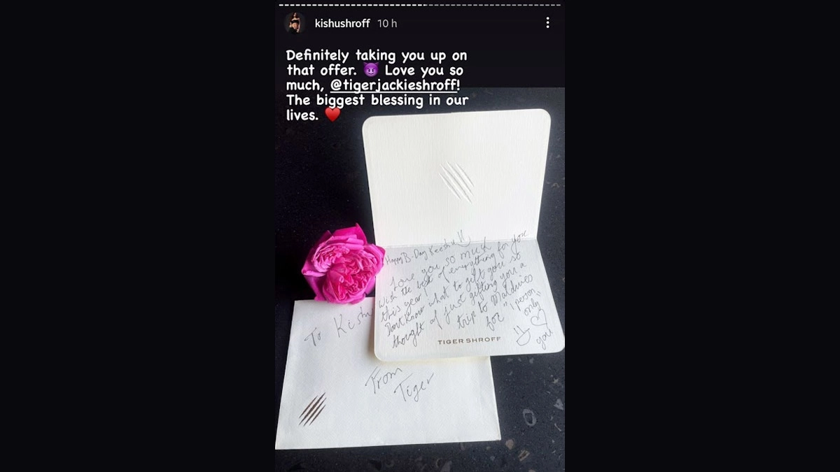 In one IG story, she shared a picture of the letter sent by her elder brother Tiger. The letter reveals that her brother gifted her trip to Maldives--valid for "one person only." She also shared a photo of a diamond bracelet she got from her mother Ayesha. Tiger Shroff Shares Monochrome Pictures From the Sets of Heropanti 2, Sister Krishna Shroff Calls Him a ‘Stud Muffin’.