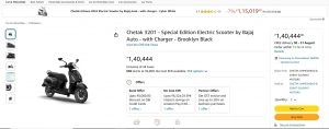 Bajaj Chetak 3201 SE is available in India at INR 1,40,444 across different states. The Special Edition is exclusively sold on Amazon platform. On most of the locations, the Chetak 3201 e-scooter is available at the same price except in Bengaluru where it is available at INR 1.28 lakh. All of these are ex-showroom prices. Depending on the location, the buyers can order the e-scooter from Amazon page from their nearby sellers. The Bajaj Chetak 3201 SE can be booked at INR 2,000.