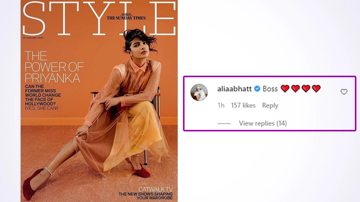 Priyanka Chopra Jonas has been featured on the cover of The Sunday Times Style Magazine. The actress has donned stunning outfits for the photoshoot and posed with absolute perfection. As the cover of the magazine highlights, one can indeed see ‘The Power Of Priyanka’ in the series of photographs shared by her. There are several comments dropped by the actress’ celebrity friends and the one shared by Alia Bhatt is something that even we totally agree. Alia has just mentioned one word with a few heart emojis and it is an apt description. Alia has called Priyanka ‘Boss’ after seeing these breathtaking pictures. Priyanka Chopra's New Pictures from her Recent Photoshoot Are a Perfect Example of Modern Style Meeting Vintage Flair!