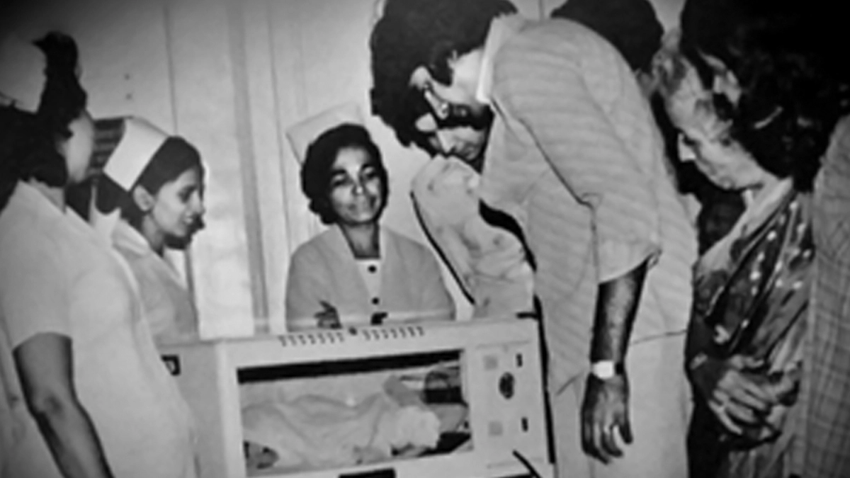 Amitabh took to his blog, where he shared a monochrome picture. The image, Amitabh is seen standing in a maternity ward. A group of nurses are gathered around the infant incubator, where the newborn Abhishek can be seen all swaddled up in a cloth.