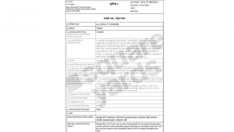 The property is located in Prabhadevi, a lively area in Mumbai that’s well-connected to both the Western and Central suburbs. With easy access to major roads like the Western Express Highway and the Worli-Bandra Sea Link, getting around is a breeze. Prabhadevi is also home to the famous Siddhivinayak Temple and is close to popular spots like Dadar Beach and High Street Phoenix, offering a perfect mix of convenience and local charm. As per sources, the apartment rented by the couple has a built-up area of 3,245 sq ft (~301.47 sq m) and a carpet area of 2,319.50 sq ft (~215. 49 sq m). It has a long car parking space which can accommodate three cars. The lease agreement, registered in November 2024, spans 36 months and includes an initial security deposit of INR 21 lakh. The rental terms are structured in tiers, with the monthly rent set at INR 7 lakh for the first 18 months. After that, the rent will increase to INR 7.35 lakh for the remaining 18 months of the lease. Ranveer Singh Shares ‘Wife Appreciation’ Post for Deepika Padukone on Their Sixth Wedding Anniversary (View Photos).