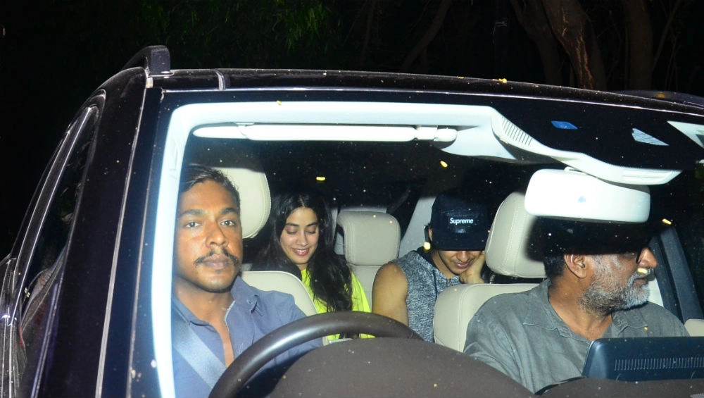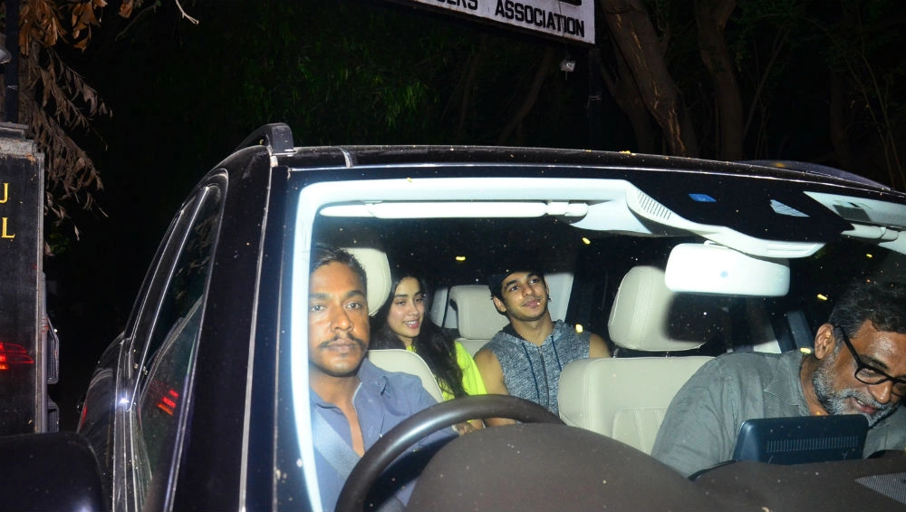 Janvi and Ishaan were seen sitting beside each other in the car today evening while R Balki was in the front seat. The trio couldn't stop smiling as the shutterbugs captured them. Check out their pictures right here: