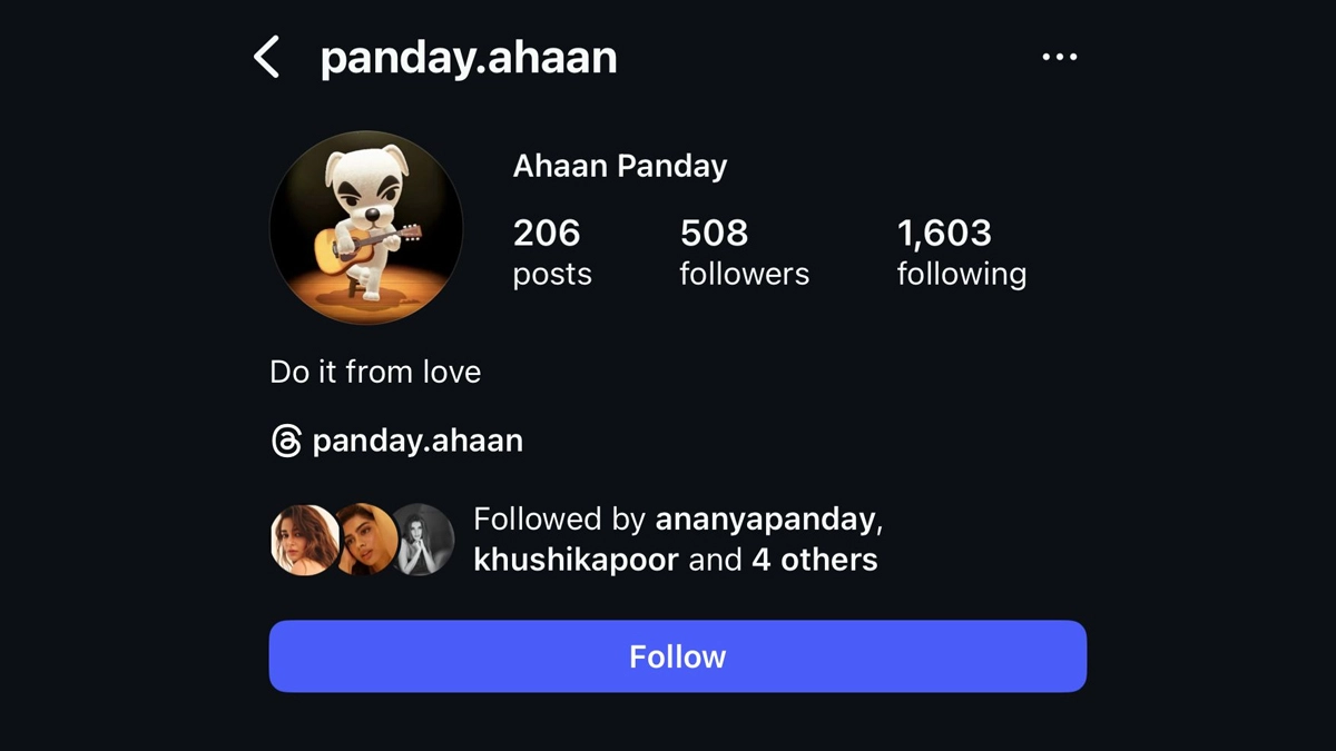 The account in question, with the handle @panday.ahaan, features a quirky display picture of a dog playing the guitar. While Ahaan has not officially confirmed that this profile belongs to him, fans are pretty sure it’s legit, thanks to the follower list.