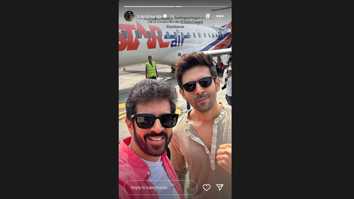 Kabir took to the Stories section of his Instagram and shared a picture with Kartik from the tarmac.