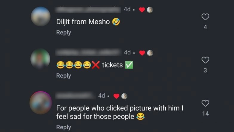 As fans of Diljit Dosanjh on Pune streets were fooled by Simarjeet's excellent prank, netizens who watched the clip teased the influencer. Most users felt that he didn’t resemble the Punjabi singer at all, while another group flooded the comment section with remarks like "Diljit from Meesho." Check out their hilarious reactions to the prank below. Dulquer Salmaan and Wife Amal Sufiya Enjoy Diljit Dosanjh's Hyderabad Concert With Celebrity Stylist Harmann Kaur and Friends (Watch Video).