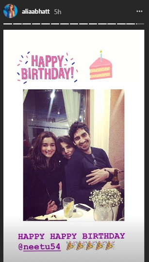 On the occasion of Ranbir's mother, yesteryear diva Neetu Kapoor's 60th birthday, the 'Razzi' star wished her a 'Happy happy birthday' via her Instagram story. Neetu's elder daughter Riddhima Kapoor Sahni also posted many pictures on the photo sharing application, celebrating the occasion.