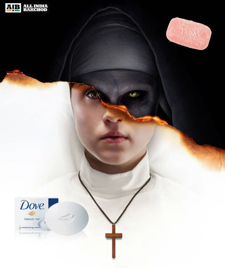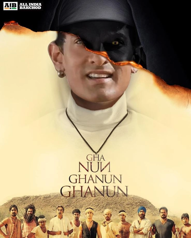 Looks like The Nun has possessed AIB's humour and they can't keep it together! The latest post of The Nun featuring Taissa Farmiga dressed as a nun and Demon Valek possessing part of her face left social media scared. Sure, the horror flick has been one of the most anticipated films since it comes from the successful horror franchise of The Conjuring. But looks like AIB has a different (and better, might we add) take on the whole Nun poster. It includes Bollywood stars like Aamir Khan, Nana Patekar, Shakti Kapoor, Daisy Shah, Jetha Lal from Taarak Mehta Ka Oolta Chashma and a below the belt humour, take over the posters.