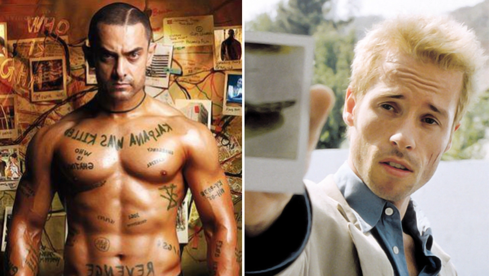Christopher Nolan's Memento is considered as one of the best thrillers of all time, with praises particularly for its non-linear narrative and the final twist. The Bollywood remake, which actually bore more resemblance to the Tamil remake, ditches the complex narrative of the Hollywood film and makes it a pretty straight-faced revenge thriller. Memento had Shelby who convinces himself that he has not killed his wife accidentally because of his amnesia and blames other people and kills them. In Ghajini, Aamir Khan's amnesiac hero is a sweet guy turned killing machine because he has a proper antagonist to face who killed his girlfriend.