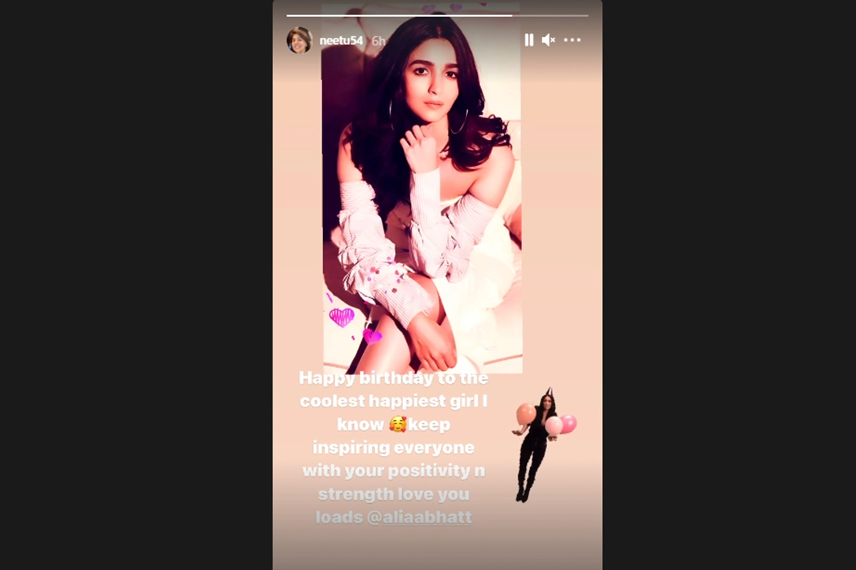 Veteran actress Neetu Kapoor has wished new-age Bollywood star Alia Bhatt on the latter's birthday. Alia turned 28 on Monday. Alia is rumoured to be dating Neetu's son, actor Ranbir Kapoor. "Happy birthday to the coolest happiest girl I know. Keep inspiring everyone with your positivity n strength love you loads @aliaabhatt," wrote Neetu, along with a picture she posted on Instagram Stories. RRR: Alia Bhatt’s First Look As Sita From SS Rajamouli’s Magnum Opus Impresses Netizens!