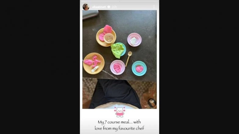 Bollywood actress Alia Bhatt's little girl, Raha, surprised her mom with a playful seven-course meal, showcasing her imaginative culinary skills. Taking to her Instagram stories, the Jigra actress posted a picture featuring the creative dishes made by Raha using modelling clay. Alia praised her daughter's creativity and affectionately referred to Raha as her "favorite chef." ‘Home, Always’: Alia Bhatt Calls Ranbir Kapoor Her ‘Home’ As the Couple Celebrates Their 3rd Wedding Anniversary.