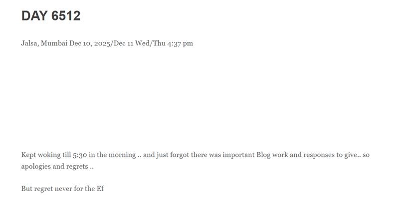 Amitabh's latest blog read, “Kept working till 5:30 in the morning .. and just forgot there was important Blog work and responses to give.. so apologies and regrets .. But regret never for the Ef (sic)."