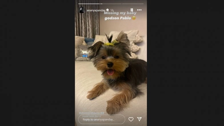 Actress Ananya Panday shared a paw-dorable glimpse of her 'baby godson' Pablo, asking her bestie Shanaya Kapoor to send him for a sleepover. Taking to Instagram Stories, Ananya, who enjoys 24.6 million followers on the photo-sharing application, dropped a cute picture of her furry friend. Ananya Panday Celebrates Siblings Day 2024 With Adorable Childhood Snap With Sister Rysa, Calls Her ‘First Child’.
