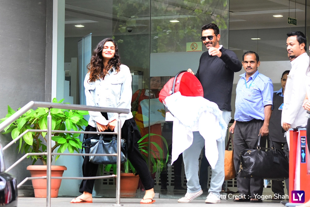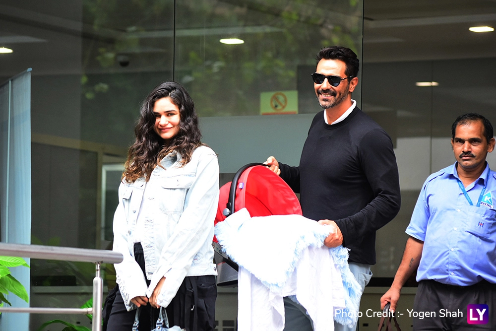 Arjun Rampal and Gabriella Demetriades are currently the happiest couple in the town. The duo just became parents to a healthy baby boy. Arjun and his girlfriend welcomed the son on July 18. Arjun shared a glimpse earlier in the day. Now, both were seen exiting the Hinduja hospital, Mumbai and they happily posed for the paparazzi. Arjun held the baby in his hand while the baby's mother was glowing. First Picture Out! Gabriella Demetriades Shares A Candid Photo Of Arjun Rampal With Their Newborn Son.