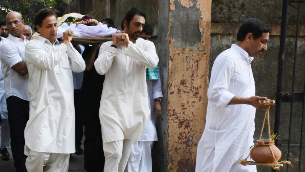 Also spotted at the funeral was Arjun's rumoured girlfriend Gabriella Demetriade. Arjun's daughters Mahikaa and Myra were also there. Arjun's ex-wife Mehr Jessia was also present with them at this time of mourning.