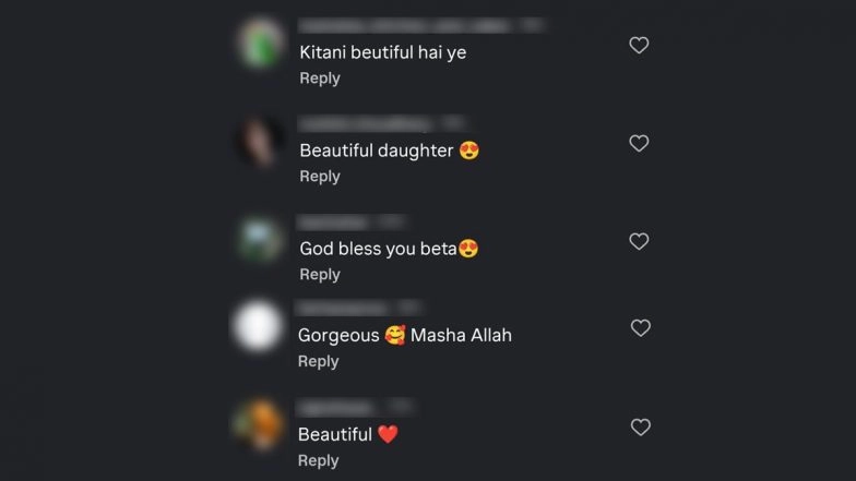 A user wrote, "Kitni beautiful hai yeh", while another commented, "Gorgeous, Masha Allah." Another comment read, "God bless you, beta."