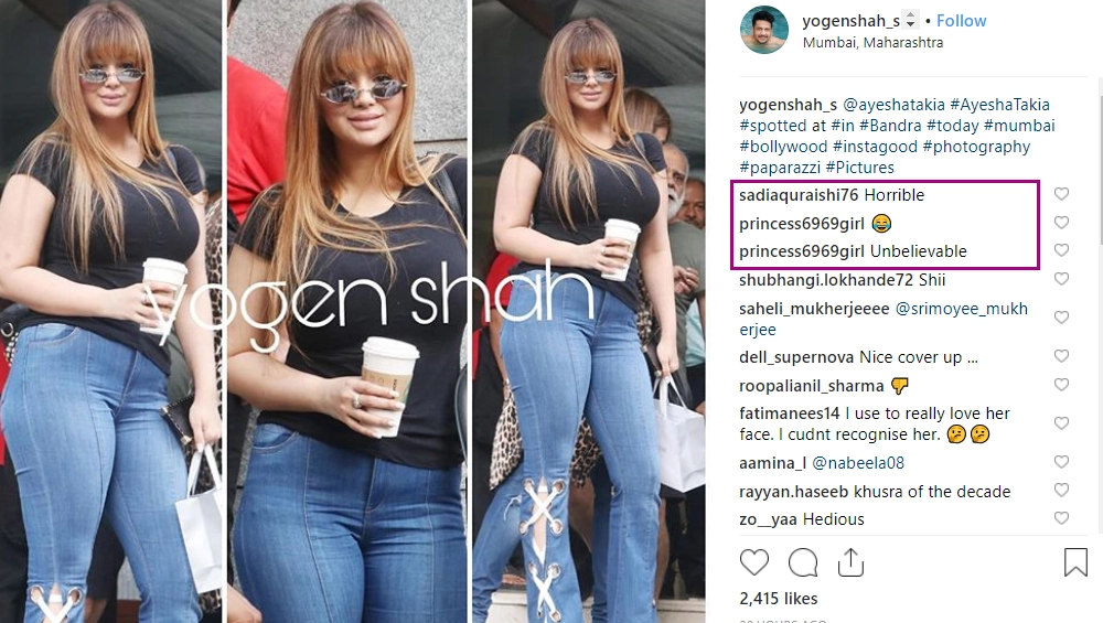 Ever since Ayesha's latest pics have come out, netizens have been slamming her for how 'different' she looks. The comments are outright spiteful, vicious and snarky. Not just that, there are hate comments on her clothes and personally, to me that only reflects the sick mentality of people. Here's what's being said about Ayesha Takia on Instagram so far-
