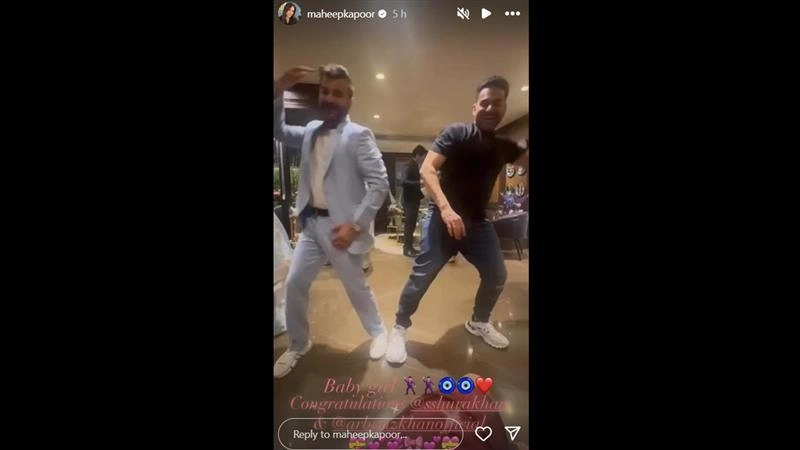 She took to the Stories section of her Instagram, and uploaded an unseen video of new dad Arbaaz tapping a foot with Sanjay to the Kayamat track. Maheep captioned the happy post, "Baby girl (dance, evil eye and red heart emojis) Congratulations @sshurakhan @arbaazkhanofficial (sic)". Last Monday, Arbaaz and Sshura hosted a lovely baby shower in Mumbai, where the couple was seen twinning in yellow.