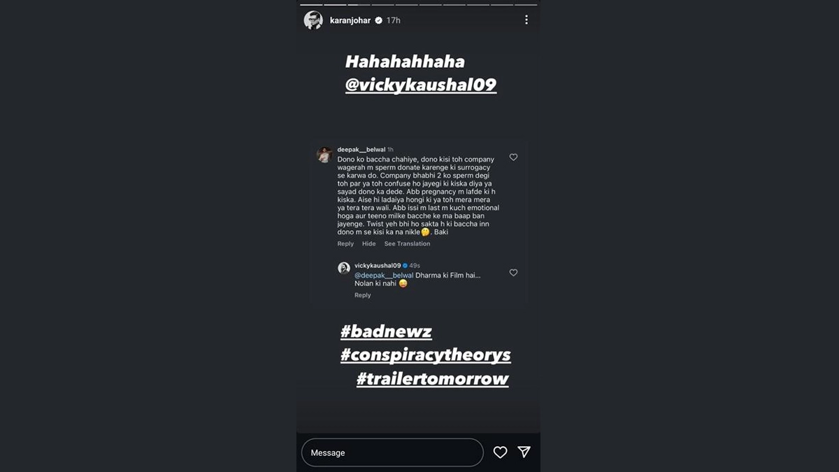 Even before the trailer was released Fans had been speculating about the storyline of the film, and recently, Vicky Kaushal had a cheeky response to a fan's wild theory. When the fan suggested that Bad Newz might be a Christopher Nolan-style mind-bender, Kaushal humorously clarified, “Bad Newz Dharma ki film hai Nolan ki nahi.” (It's Dharma's film, not Christopher Nolan's.) His comment serves as a playful reminder that the film promises classic Dharma Productions entertainment, not a Nolan-esque puzzle!