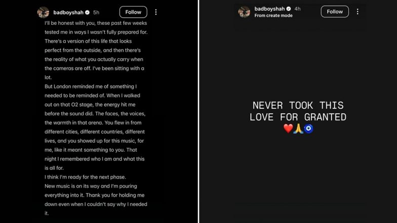 Now, Badshah has published a long note on his Instagram Stories after a concert in London, saying that he is ready for the next phase. He claimed that the last couple of weeks have been extremely challenging for him. Badshah wrote on the photo-sharing app, "I’ll be honest with you, these past few weeks tested me in ways I wasn’t fully prepared for. There’s a version of this life that looks perfect from the outside, and then there’s the reality of what you actually carry when the cameras are off. I’ve been sitting with a lot. (sic)"