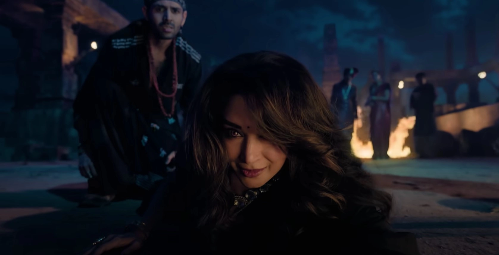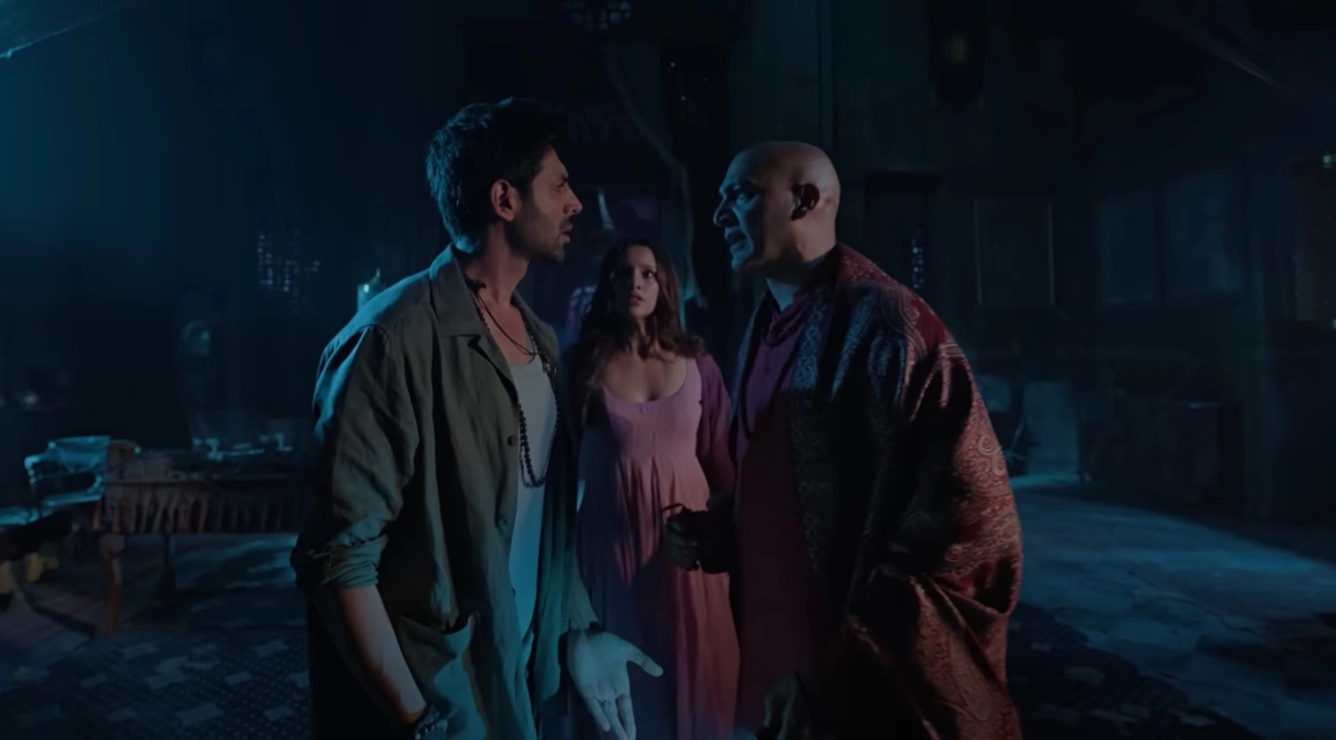 But everyone is more concerned with identifying Manjulika and strangely forgets about Anjulika. This leads to two contenders: Mallika (Vidya Balan), who claims to be a restoration expert, and Mandira (Madhuri Dixit), who presents herself as a royal interested in purchasing the palace. Occasionally, the movie also casts suspicion on Meera (Triptii Dimri), hinting that she could be the reincarnation of the prince’s wife though that amounts to nothing. So, who really is Manjulika?