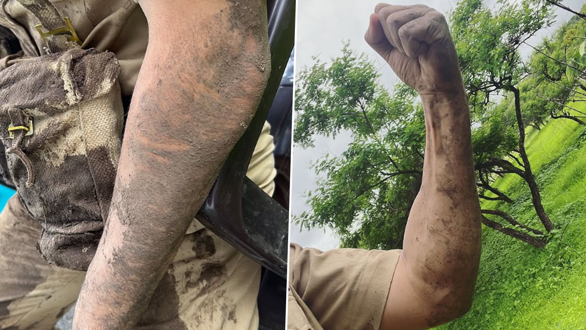 Varun Dhawan took to social media to share a glimpse from the sets of Border 2, shortly after the temporary ban on co-star Diljit Dosanjh was lifted. On Friday, the Dilwale actor posted behind-the-scenes photos, giving a sneak peek into the ongoing shoot of the much-anticipated film. Taking to his Instagram Stories, Dhawan shared two photos without revealing any faces. One of the images featured Ahan Shetty, though his look was kept under wraps. Suniel Shetty’s son was seen dressed in uniform, with mud covering his arms and clothes. In another shot, an actor is seen posing with a fistful of mud in his hand. Varun simply captioned the image, “#Border 2.” ‘Border 2’: Amid ‘Sardaar Ji 3’ Backlash, Is Diljit Dosanjh Still Part of Sunny Deol’s Upcoming War Film? Here’s What We Know.
