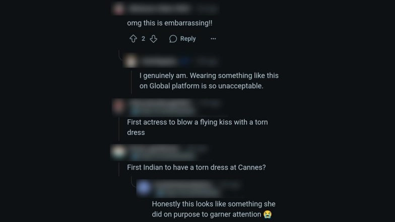 Reacting to her red carpet video on Reddit, a user wrote, "Wearing something like this on global stage is so unacceptable," while another joked, "First Indian to have a torn dress at Cannes?" Another user commented, "First actress to blow a flying kiss with torn dress," while another wrote, "Honestly, this looks like something she did on purpose to garner attention." Old Video of Urvashi Rautela Getting Stuck in Revolving Door at Cannes Film Festival Goes Viral (Watch).