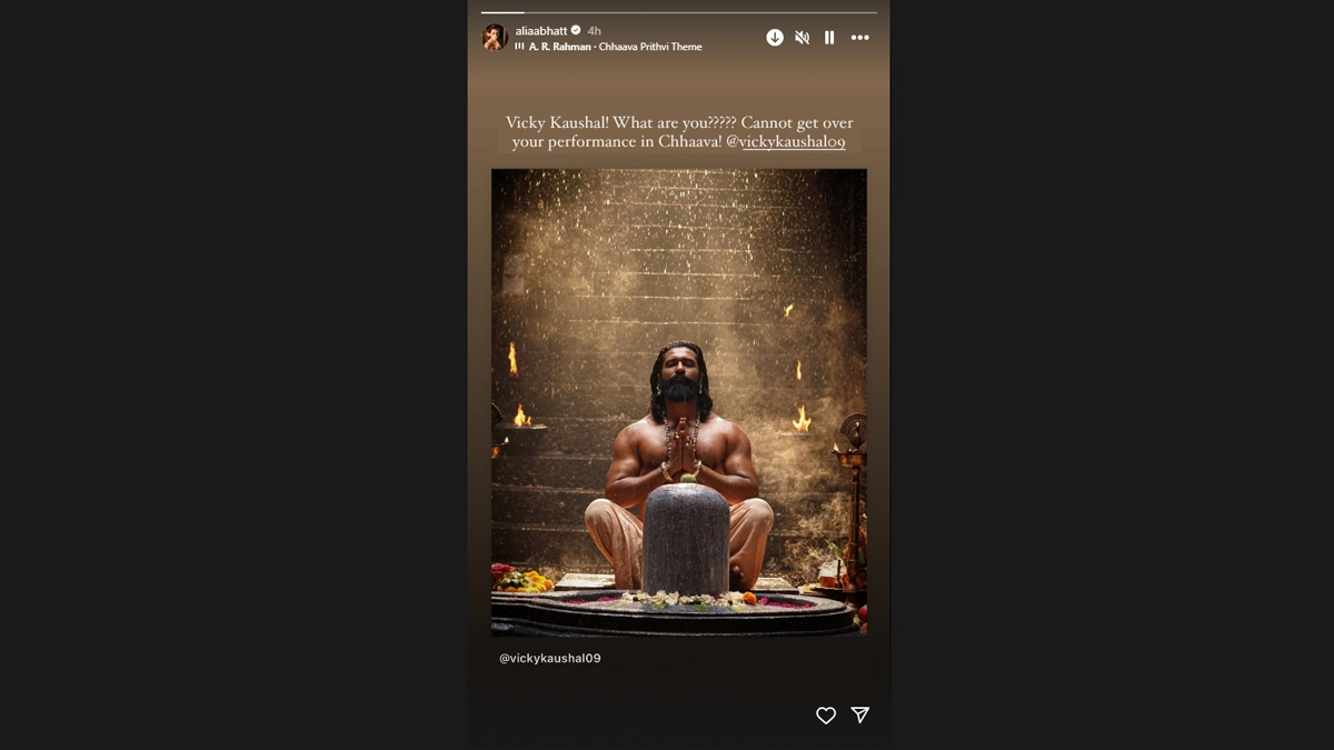 Actress Alia Bhatt recently expressed her admiration for Vicky Kaushal's performance in the film Chhaava. In a sweet post, the actress shared that she simply can't get over his exceptional portrayal. On Wednesday, Alia took to her Instagram stories to praise Vicky's stint in Laxman Utekar's historical period drama. She posted a photo of the actor from the movie and captioned it, “Vicky Kaushal! What are you???? Cannot get over your performance in Chhaava! @vickykaushal.” To note, Alia and Vicky had worked together in Meghna Gulzar’s spy thriller Raazi, which released in 2018. ‘Chhaava’ Box Office Collection Day 5: Vicky Kaushal’s Historical Epic Remains Strong, Mints INR 171.28 Crore in India.