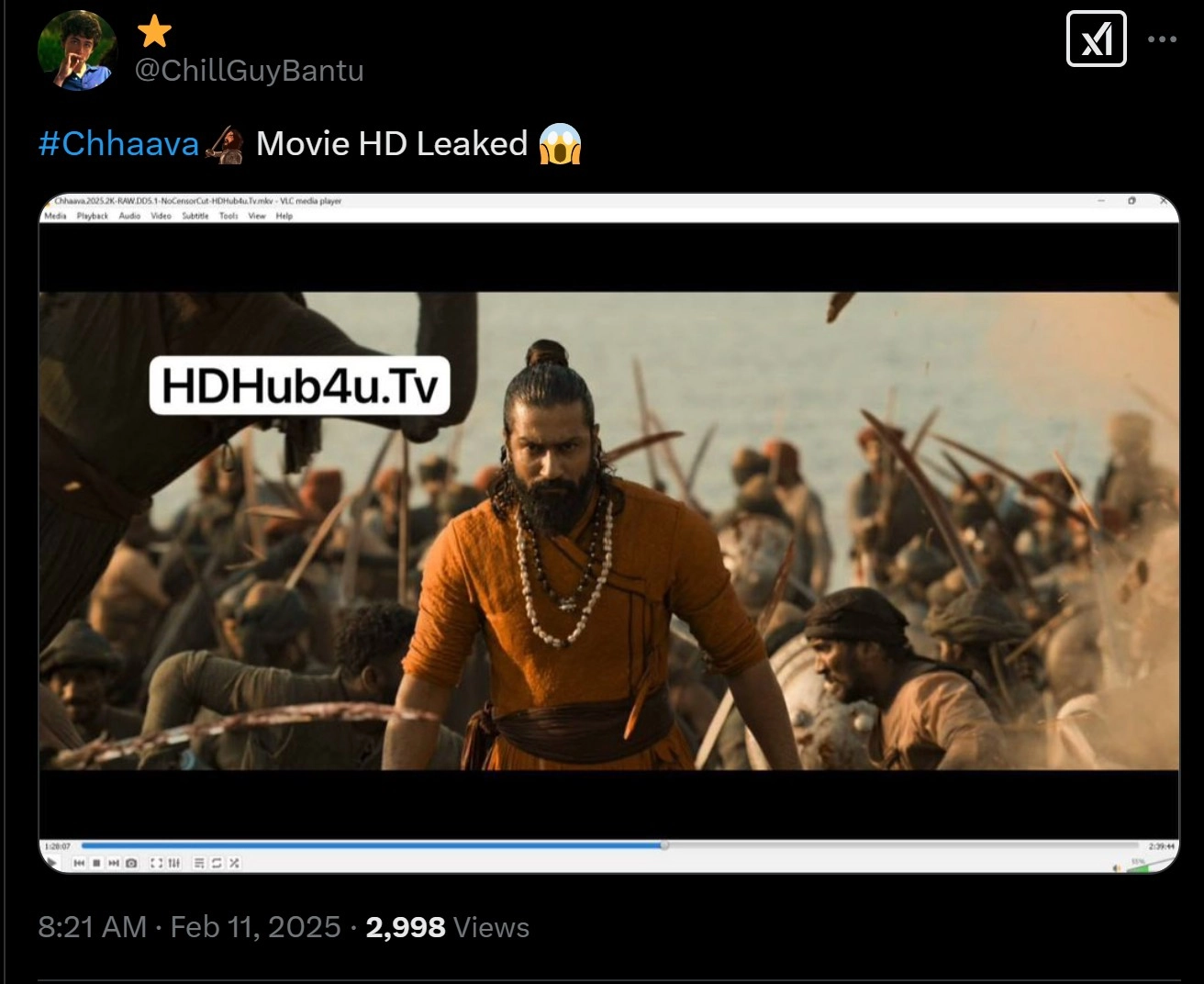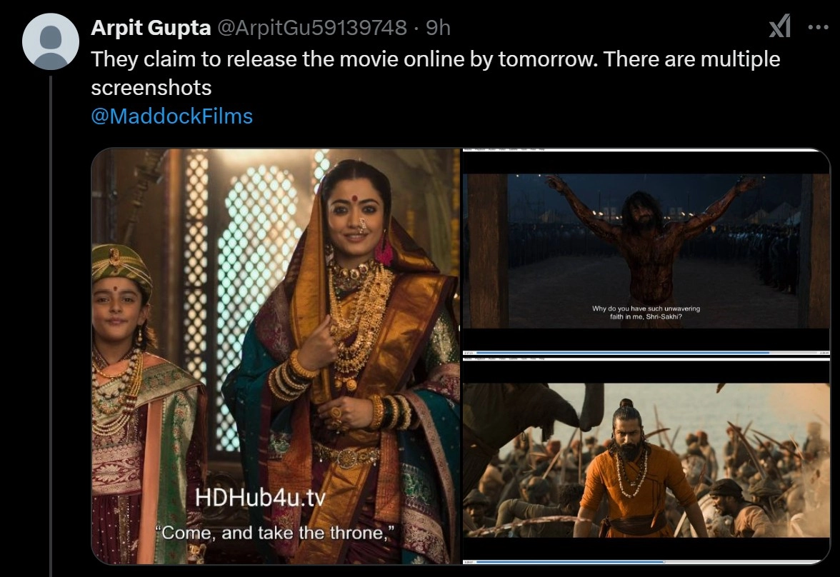 One user has tagged Chhaava's producers, urging them to investigate the matter seriously. The user further alleged that a team associated with a Telegram page plans to release the movie online via torrent sites on February 12 - two days before its theatrical release.