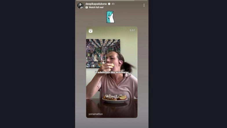Now, Deepika took to Instagram Stories, where she has 80.2 million followers and re-shared a Reel video which is titled “If Adults Ate Like Newborns”. It features a woman waking up on the couch and heading to the kitchen to prepare a meal. After a moment of staring at her plate, she comically attempts to eat messily, ultimately passing out after just one bite, her mouth agape. Throughout the clip, she mimics the head-shaking antics of a newborn, bringing a humorous twist to the everyday challenges of mealtime.