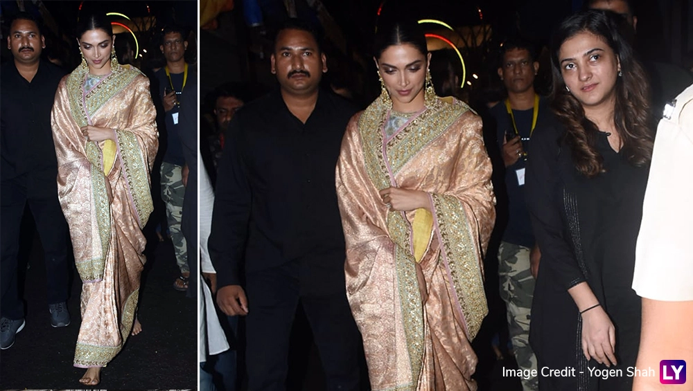 Deepika looked divine in her traditional six yards and we loved the way she styled herself. The light brown saree with a heavily embellished border and traditional jewellery is a stunning combo and we are glad to see Deepika settle for that. It was a brief visit for the Padmaavat actress where she was escorted by her team towards the pandal and later she made her exit after offering her prayers. Ranveer couldn't accompany his wifey dearest though we wished if he was present by her side. Hina Khan and Beau Rocky Jaiswal Visit Lalbaugcha Raja Pandal to Seek Bappa’s Blessings – View Pics.
