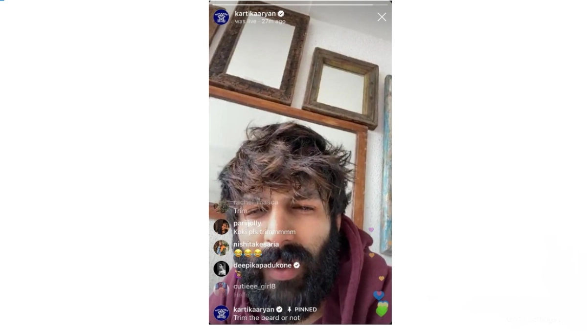 Kartik Aaryan and Deepika Padukone have struck a very interesting friendship. Kartik reached the airport to teach the actress his famous "Dheeme Dheeme" dance step after a cute exchange of words on social media. Now, their latest conversation on social media is also pretty interesting and we want to know where this one leads to. So, Karik has been growing out his beard during the lockdown. Not the best look, when it looks unkempt. Deepika pointed it out to Kartik.