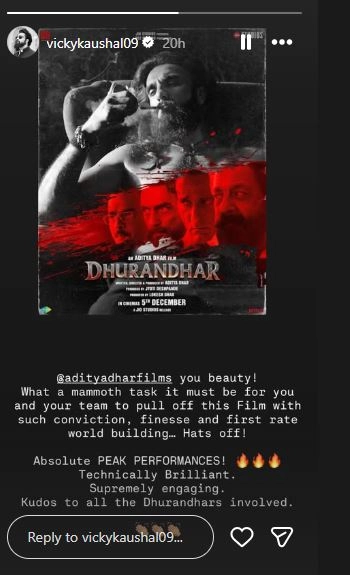 Vicky also went on to laud the entire cast and crew of "Dhurandhar", who were a part of his 'supremely engaging' project. “Absolute PEAK PERFORMANCES! Technically Brilliant. Supremely engaging. Kudos to all the Dhurandhars involved," he added. ‘Dhurandhar’ OTT Release Date: Will Ranveer Singh and Aditya Dhar’s Film Stream on Netflix or JioHotstar? Here’s What We Know.
