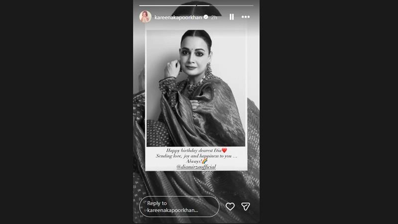 Taking to the Stories section of her official Instagram handle, Bebo wrote, "Happy birthday dearest Dia (red heart emoji). Sending love, joy, and happiness to you...Always! (Rainbow emoji) @diamirzaofficial.(sic)."