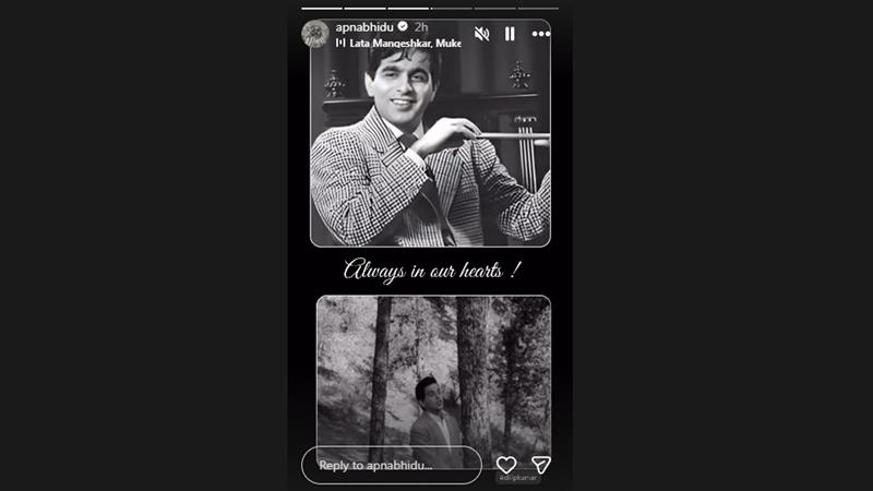 Jackie took to Instagram stories, where he shared a monochrome moment of Dilip Kumar from the 1958 film Madhumati, where he is seen performing on the track Dil Tadap Tadap Ke originally sung byLata Mangeshkar and Mukesh.