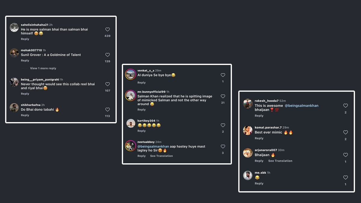 Fans reactions“Do Bhai dono ”Tabahi”—one user summed up the madness perfectly. Another said, “Sunil Grover: a goldmine of talent.” A fan joked, “He is more Salman bhai than Salman bhai himself!” One hilarious comment read, “Salman Khan realised that he is spitting image of mimicked Salman and not the other way around.” Someone even commented, “Never thought would see this collab reel—Bhai and riyal Bhai!” And of course, Salman’s smile had fans swooning: “You look good when you laugh sir.” ‘I’m Coming Home,’ Says Navjot Singh Sidhu on Returning to ‘The Great Indian Kapil Show’ Season 3